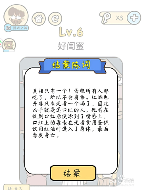 6.最后成果如下图所示,提交三条线索获得了案陈词即可过关。