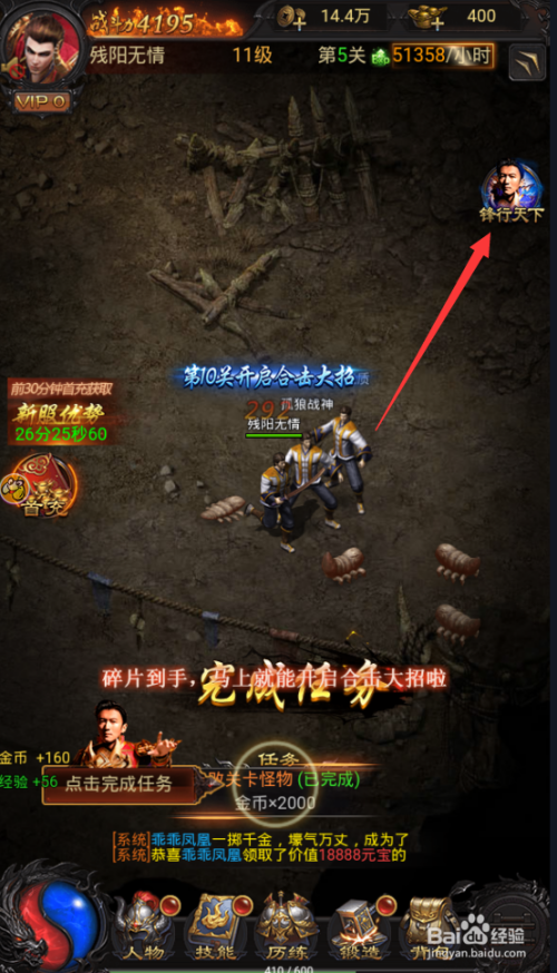 进入至尊蓝月游戏界面后,点击“锋行全国”。