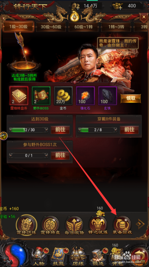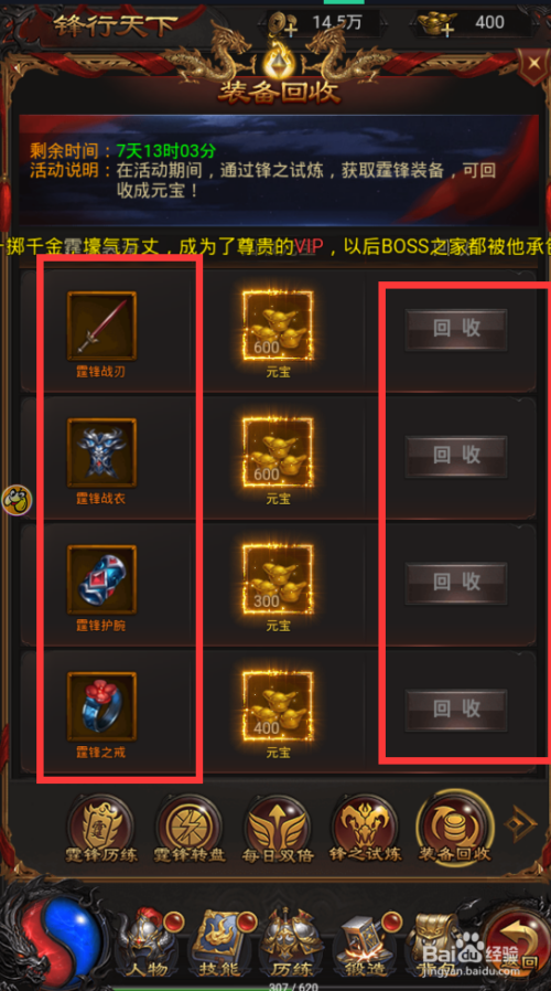 进入装备收受接管界面后,就可以收受接管装备获得元宝了。