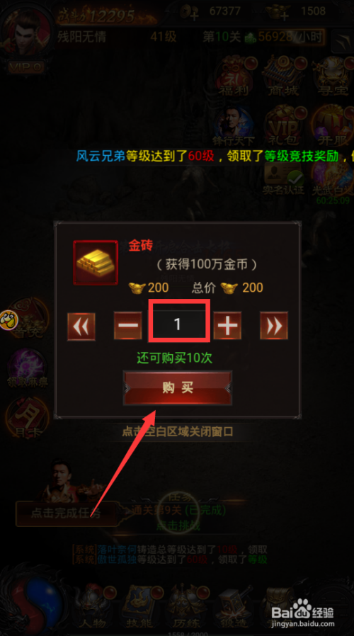 在手机上运行至尊蓝月APP后,点击金币左边的“+”号。