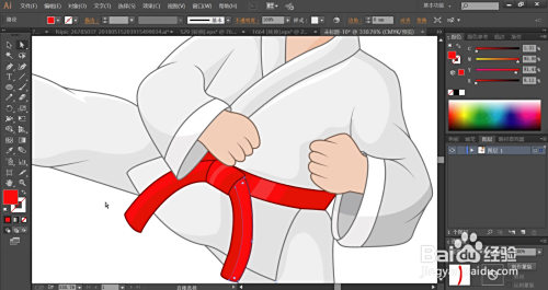 男孩的腰带用红色与暗红色搭配填充,腰带中心的亮光可以用浅红色来填充。