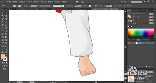 男孩的脖子右侧利用暗粉色填充,男孩的衣服用暗灰色填充本家儿体,再用灰白色填充衣服的高光路径。在袖口用白色填充,袖口的内部用灰黑色填充。