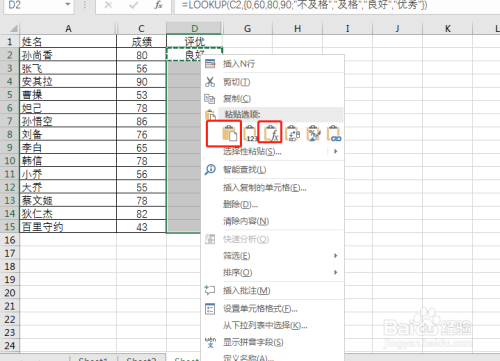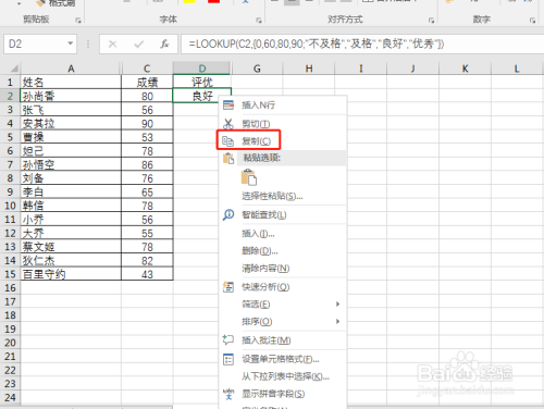 5、粘贴完当作,即可将所有学生的成就全数评优完当作。