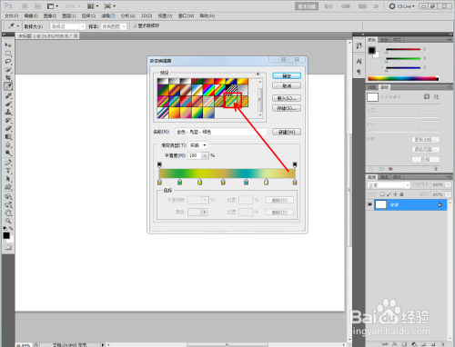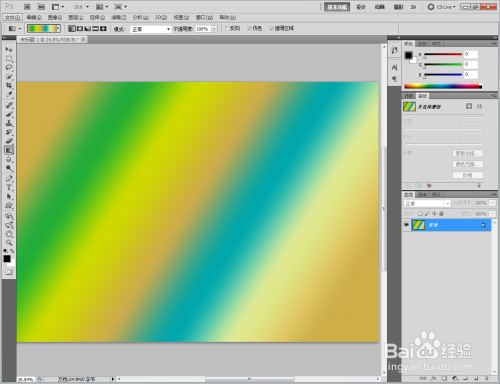 最后,点击鼠标左键,拉出作金-蓝-绿线性渐变结果即可。