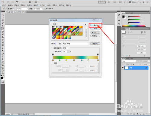 选择【金-蓝-绿】渐变后,点击【确定】;