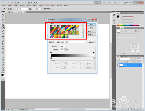 点击【渐变东西】-【线性渐变】,点按【可编纂渐变条】,弹出渐变编纂器;