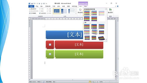 在编纂区呈现一个图片重点列表图,需要对其进行一些处置,以更美不雅。在SmartArt 东西栏中选择设计院选项卡——样式组,选择本身的颜色