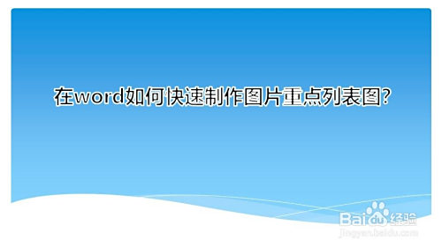 点击插入选项卡——插图组——SmartArt按钮。在跳出的对话框架中选择图片重点列表图。