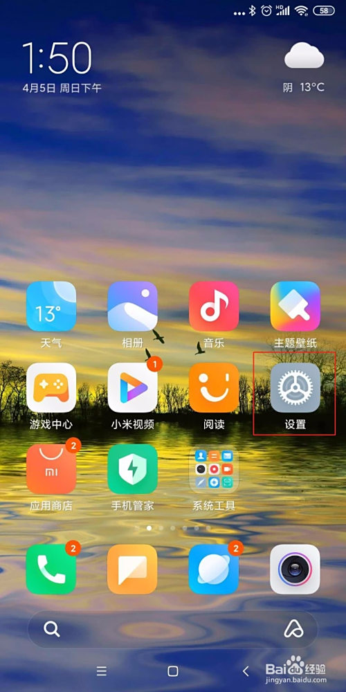 解锁手机进入后,选择设置的图标进入。如下图所示。