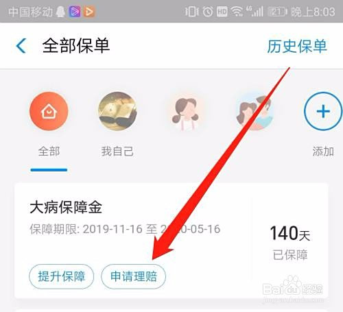 然后点击【申请理赔】按钮,如下图所示。