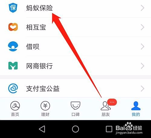 然后点击【蚂蚁保险】,如下图所示。