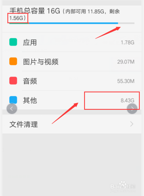第三:在手机空间中残剩空间甚少可是【其他】占用空间很大。
