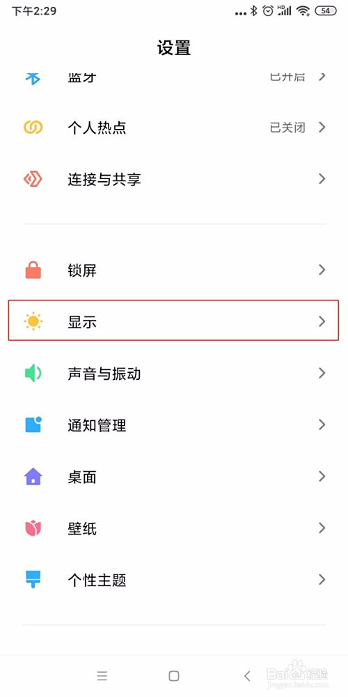 在设置界面,选择显示。