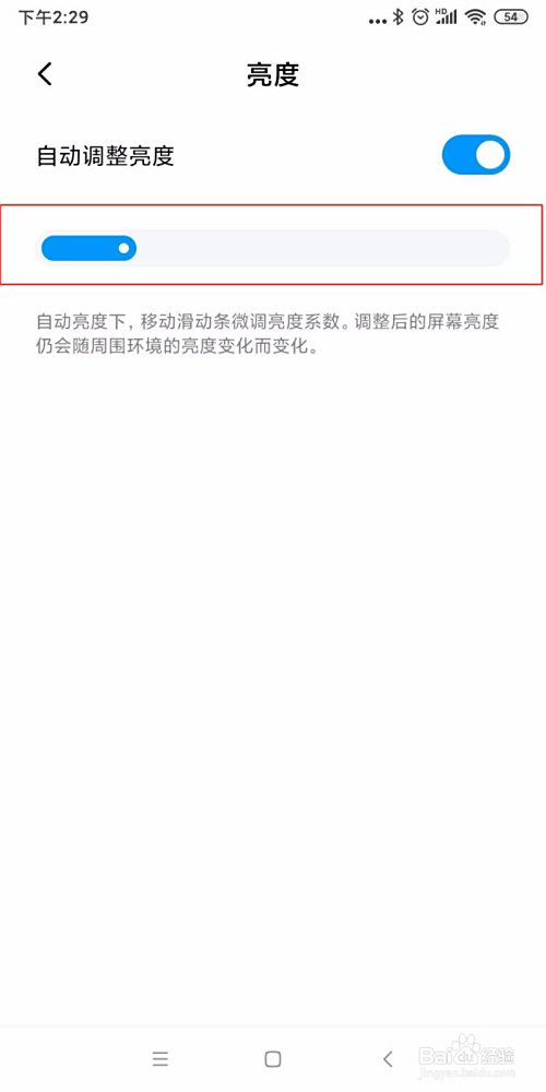 在亮度界面,移动滑动条,调整好您需要的亮度。如下图所示。