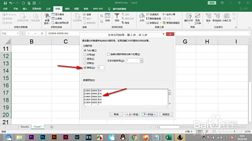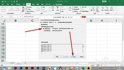 2.打开文天职列对话框点击——分隔符号,点击下一步。