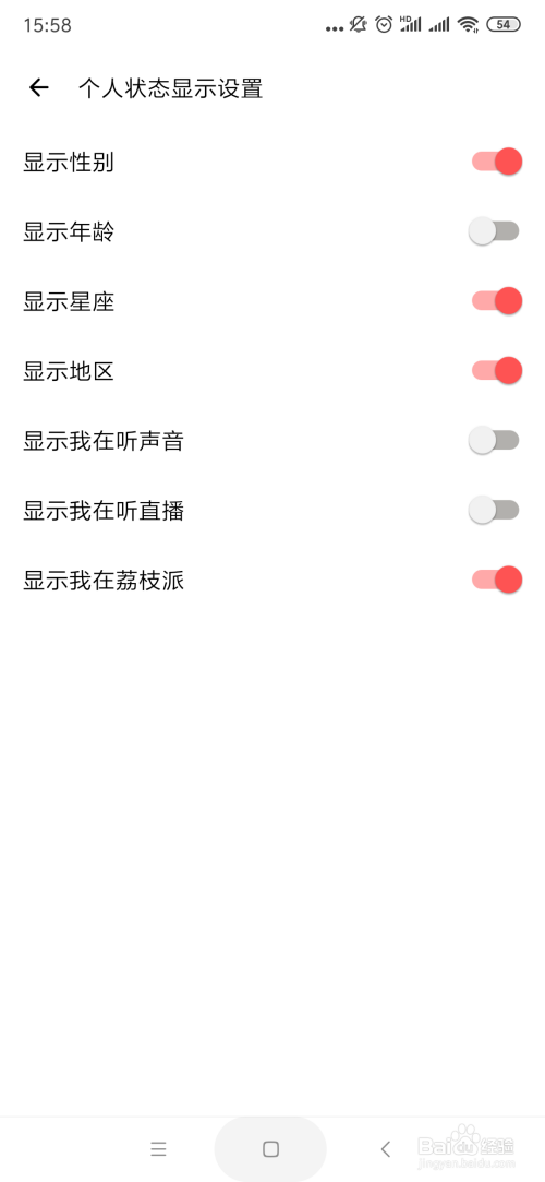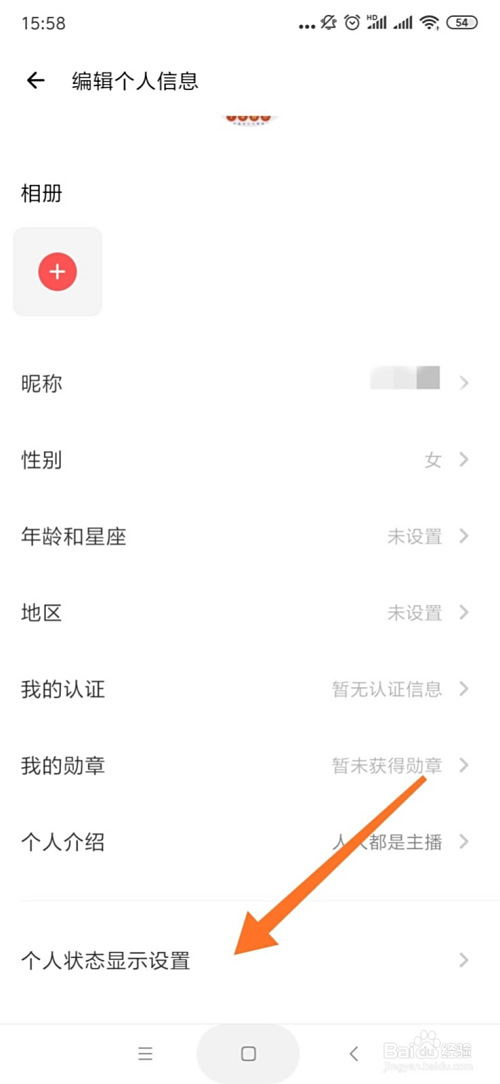 进入小我信息编纂页面,点击下方的”小我状况显示设置“。