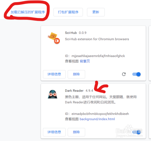 我们打开扩展程序,并用开辟者模式