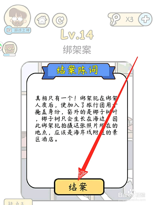 5.最后成果如下图所示,提交三条线索,解锁了案陈词即可过关。