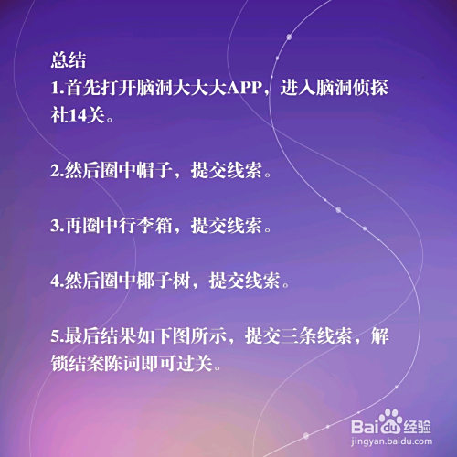 起首打开脑洞大大大APP,进入脑洞侦察社14关。