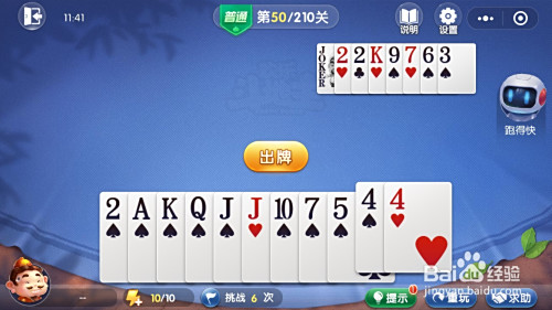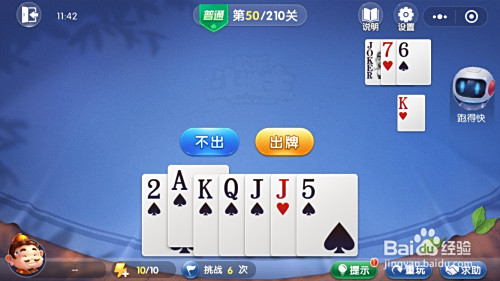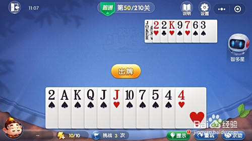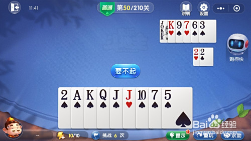 接着我方出对子J、单张K、单张2,对方均要不起。