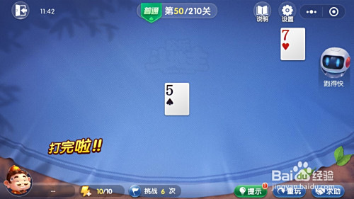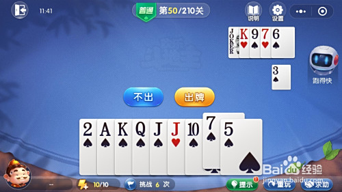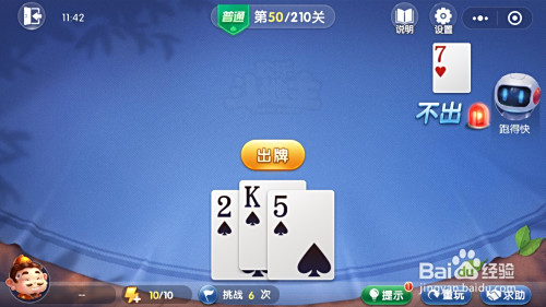 最后我方出单张5,我方先出完牌,胜利,闯关当作功。