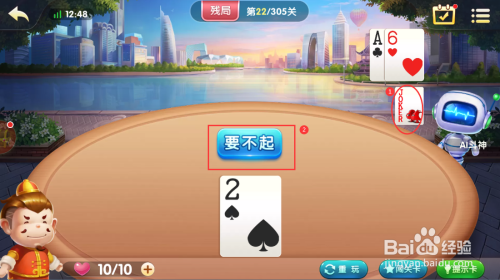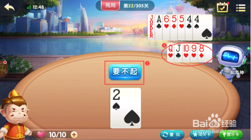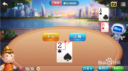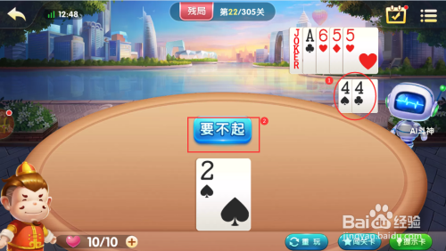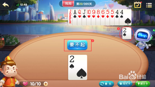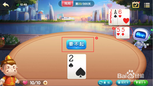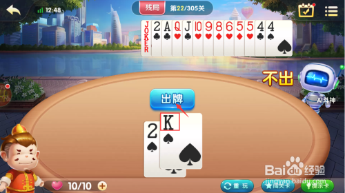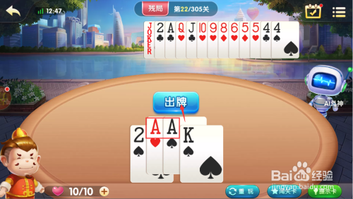 进入爱玩斗田主残局第22关,如图,不雅察之后发现,这局比力简单,我方对A大牌,农人要失落一张牌。所以,开局走一对AA。