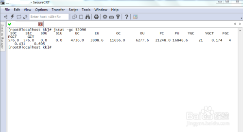 利用jstat查看gc次数实时间,如下图中知道年青代gc次数为21,old代gc次数为4,总gc时候为0.605秒。
