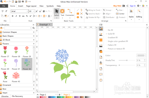 我们就在Edraw Max中建立好了需要的蓝色花草。