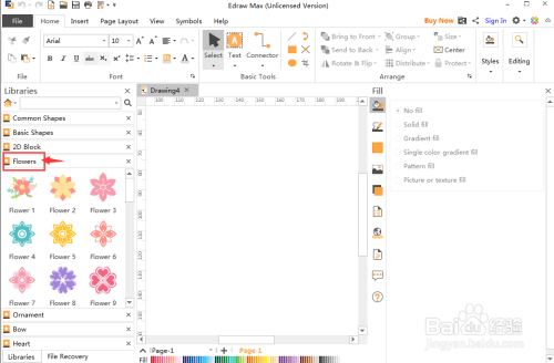 打开感激卡符号库,点击花;