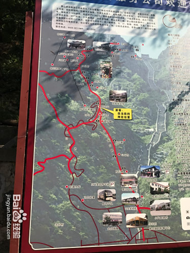 路线:登高必自(石碑)-->经石峪(牌楼)-->柏洞(石碑笔迹)-->壶天阁(牌楼)-->峰回路转(石碑笔迹)