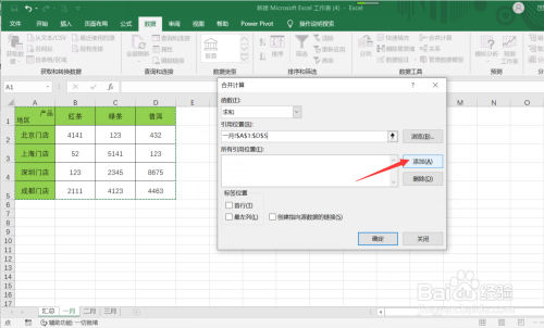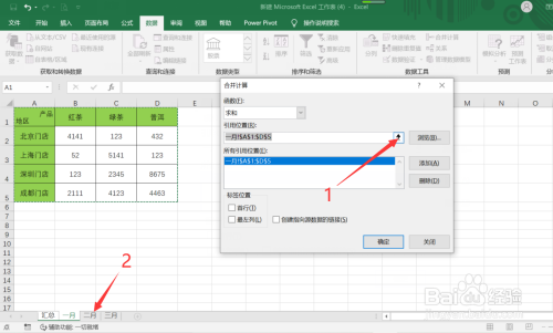 第五步:同样的,先点击【引用位置】下方空格右侧的下拉箭头,添加其它月份的表格