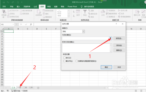 2、点击【引用位置】下方空格右侧的下拉箭头,在点击一月的表格