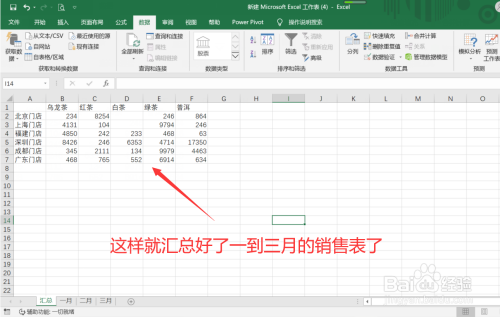 这样就汇总好了一到三月的发卖表了,是不是和快捷适用呢