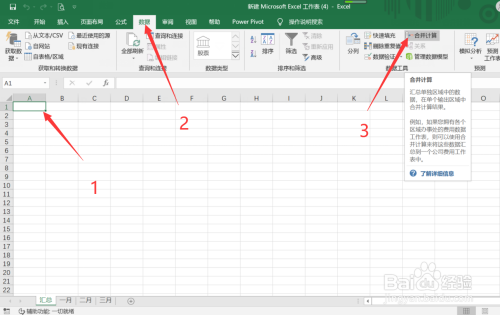 第一步:成立一个新的空白表格,点击【数据】选项卡下方的【归并计较】