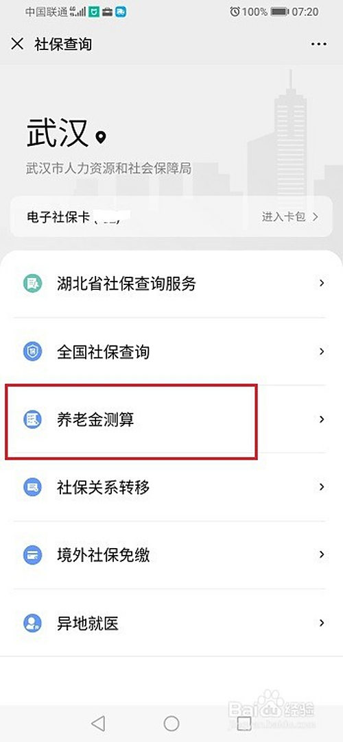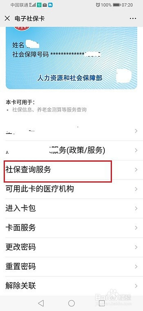第三步进去微信电子社保卡之后,点击社保查询,如下图所示: