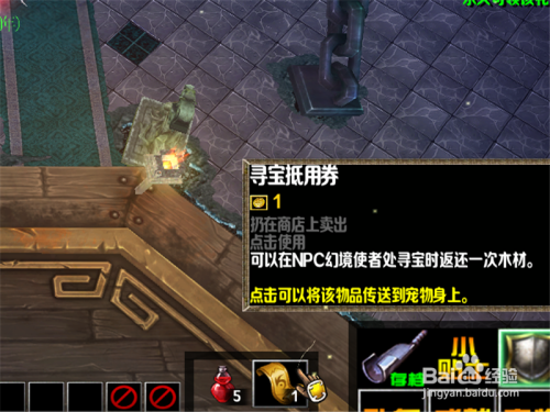 经由过程刷怪,我们会有几率失落落这个寻宝抵用券,拾取之后先不消点击。