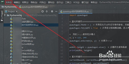 起首我们打开我们的Pycharm,然后建立好一个项目,之后我们再点击界面上方菜单栏中的文件按钮。