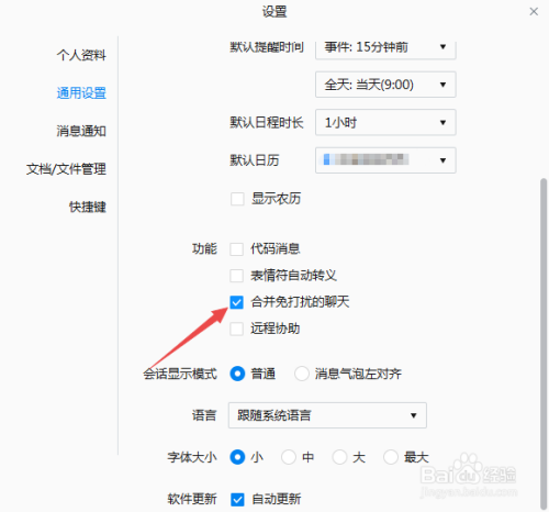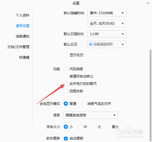 之后将归并免打搅的聊天的勾选给点击打消失落。