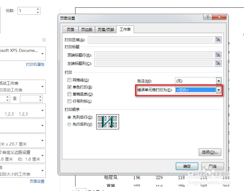 紧接着,将“错误单位格打印为”设置为空白,最后点击“确定”,具体如图所示: