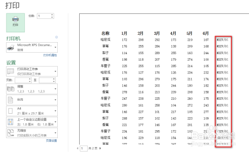 快捷键Ctrl+P,可以看到预览打印界面中,错误值是会进行打印的,具体如图所示: