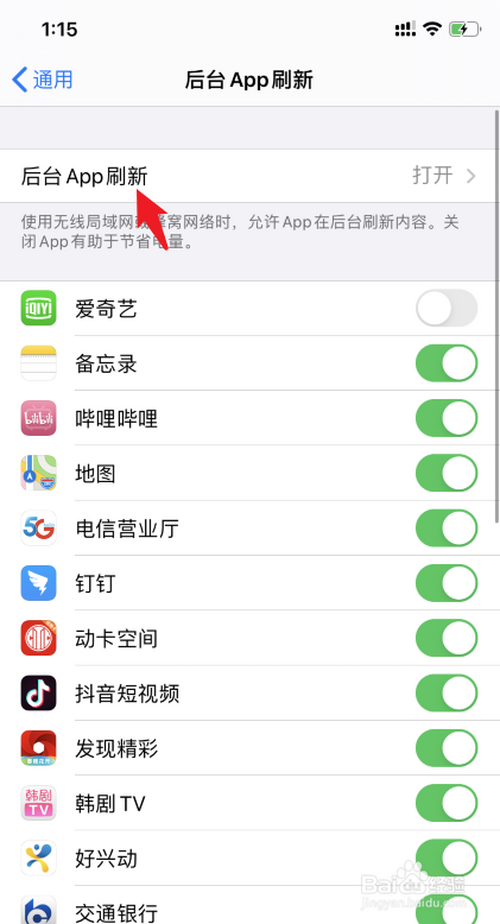 4.选择上方的后台APP刷新。