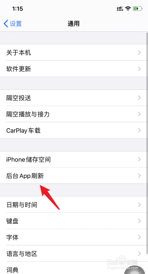 在通用设置中,点击后台APP刷新的选项。