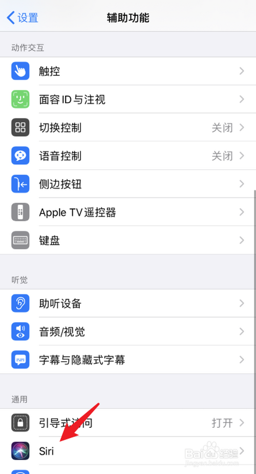 同时,进入辅助功能,点击下方的Siri选项。