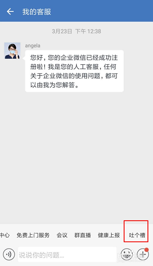 企业微信作为一款办公通讯软件,非常人性化。为我们提供了客服服务,可以在我的客服中对企业微信的各个功能模块进行反馈,官方称其为吐个槽,今天我就教大家企业微信怎么吐槽群机器人功能模块。