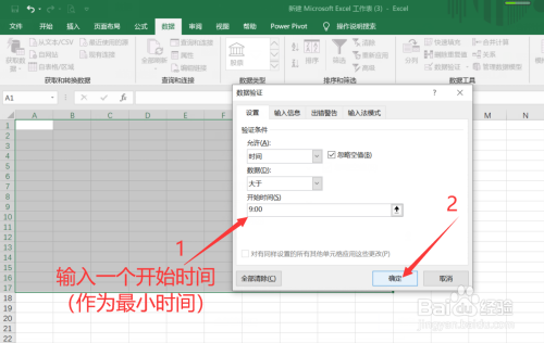 第四步:输入一个【起头时候】(作为最小时候),然后点击【确定】