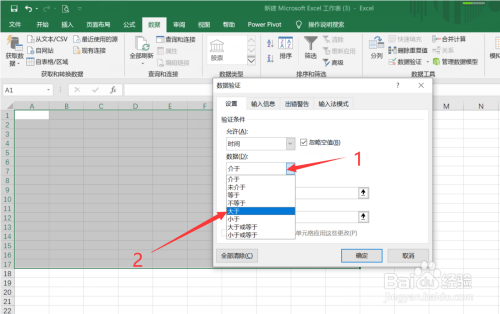 第三步:点击【数据】下方右侧的下拉箭头,选择【大于】
