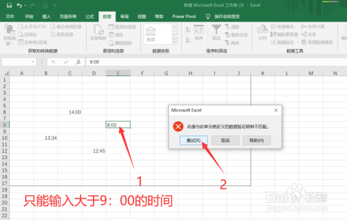 第五步:这样就只能输入9:00之后的时候了,点击【重试】