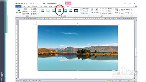 点击图片,激活图片东西。选择图片东西——照片样式组,已有样式中的矩形投影。