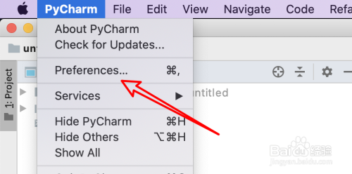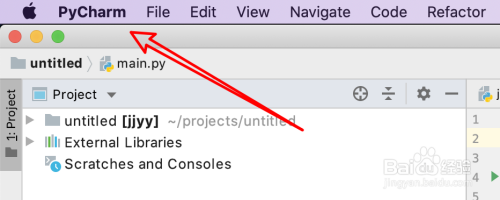 打开编纂器,点击上方的PyCharm菜单项。