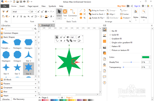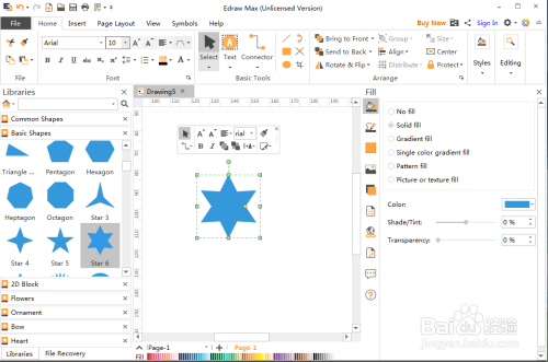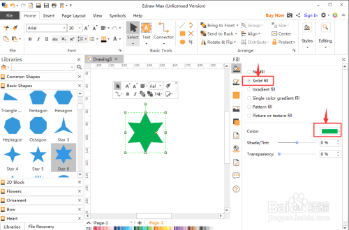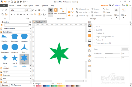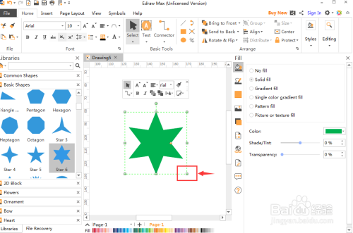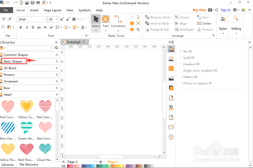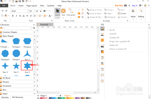 2、进入感激卡符号库中,点击根基外形,找到并选中六角星;